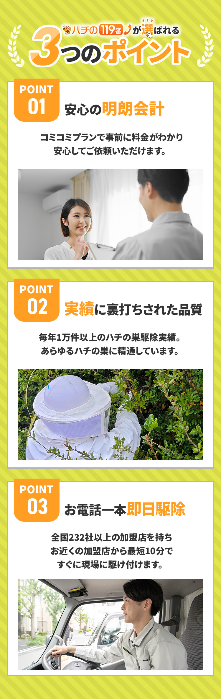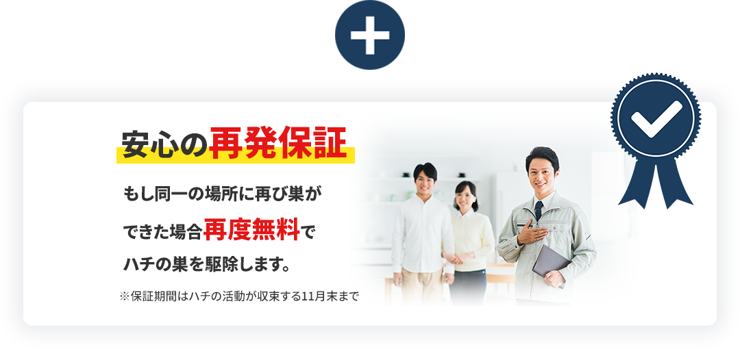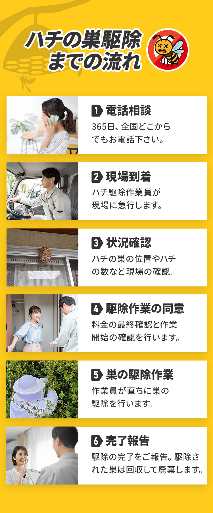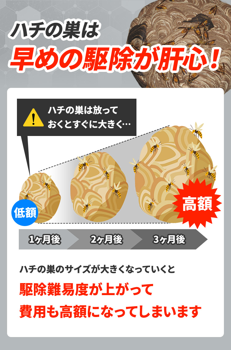 ※高さ2.5mを大きく超える場合、特殊工具による作業が必要な場合、直径20cmを大きく超える巨大な巣の場合はプランの適用範囲外となり、随時見積となります。