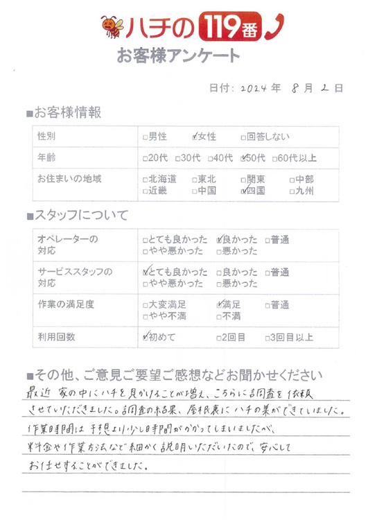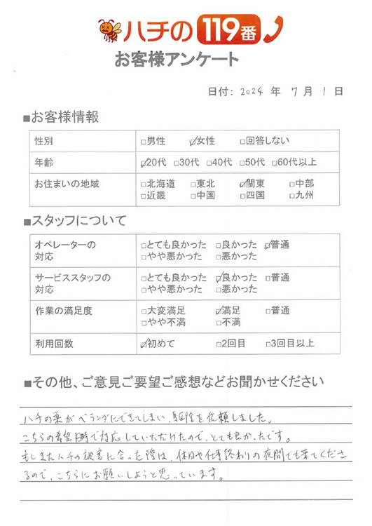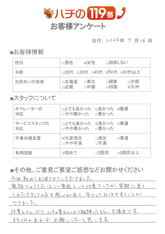 駆除した巣はこちらで責任を持って廃棄いたします。