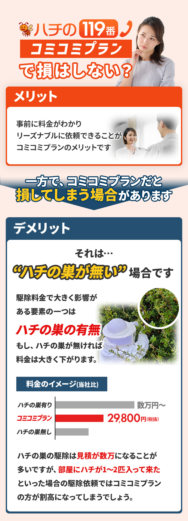 ※コミコミプランが適用できない場合も、事前に説明してお見積を提示し、追加費用などが発生するようなことはございません。